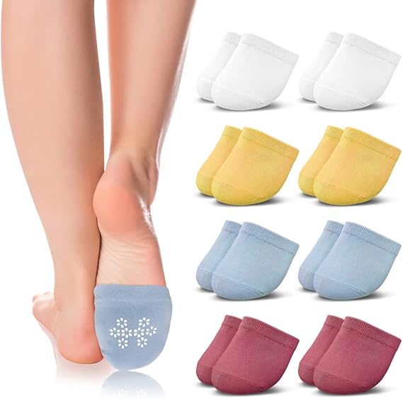 8 Pairs of Toe Topper Liner No Show Invisible Non-Skid Half Seamless Mule Socks for Women