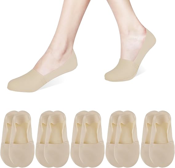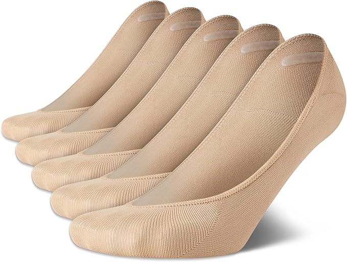 No Show Socks for Women, 5 Pairs Beige Invisible Boat Liner Flat Socks Non-slip Casual Ultra Low Cut Socks Soft Stretchable