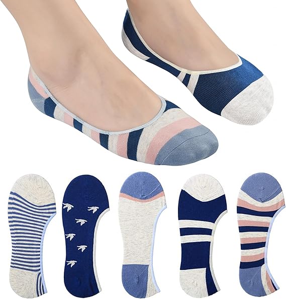 5-Pack No Show Socks for Women Size 6-9 Ankle Invisible Non-slip Athletic Socks