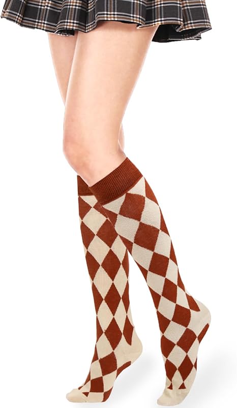 Funny Argyle Knee High Socks for Women Girls Novelty Colorful Argyle Patterned Knee High Tube Athletic Socks Gift