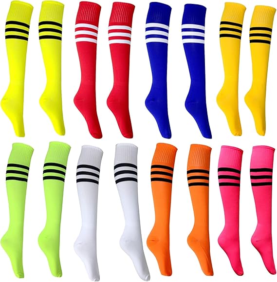 18 Pairs Soccer Socks Colorful Knee High Tube Socks Stretchy Football Baseball Stripes Socks for Men Women Teens Team