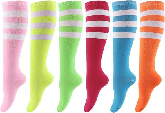 Neon Knee High Socks, 8 Pairs Striped Tube Sock Athletic Baseball Basketball Dance Neon Colored Soccer Socks for Adult Girls